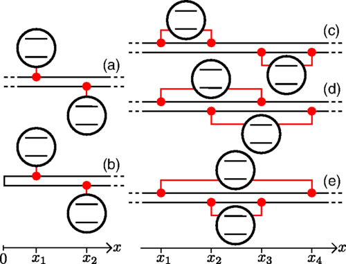 In quantum-optics experiments with both natural and artificial atoms, the atoms are usually small enough that they can be approximated as pointlike compared to the wavelength of the electromagnetic radiation with which they interact. However, superconducting qubits coupled to a meandering transmission line, or to surface acoustic waves, can realize “giant artificial atoms” that couple to a bosonic field at several points which are wavelengths apart. We have previously done theoretical studies of a single giant atom, showing among other things how the relaxation rate in such a system becomes frequency-dependent due to interference between the multiple connection points. In this work, we studied setups (shown in the figure) with multiple giant atoms in a one-dimensional (1D) waveguide. We showed that the giant atoms can be protected from decohering through the waveguide, but still have exchange interactions mediated by the waveguide. Unlike in decoherence-free subspaces, here the entire multiatom Hilbert space is protected from decoherence. This is not possible with “small” atoms. We further showed how this decoherence-free interaction can be designed in setups with multiple atoms to implement, e.g., a 1D chain of atoms with nearest-neighbor couplings or a collection of atoms with all-to-all connectivity. This may have important applications in quantum simulation and quantum computing.
